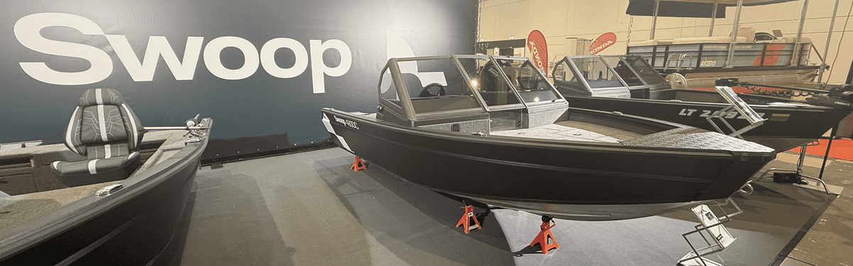 Swoop boats were publicly presented for the first time at the Boat & Fun Berlin exhibition in November 2025. The participation was organised by our Lithuanian dealer, Fishmasteris.